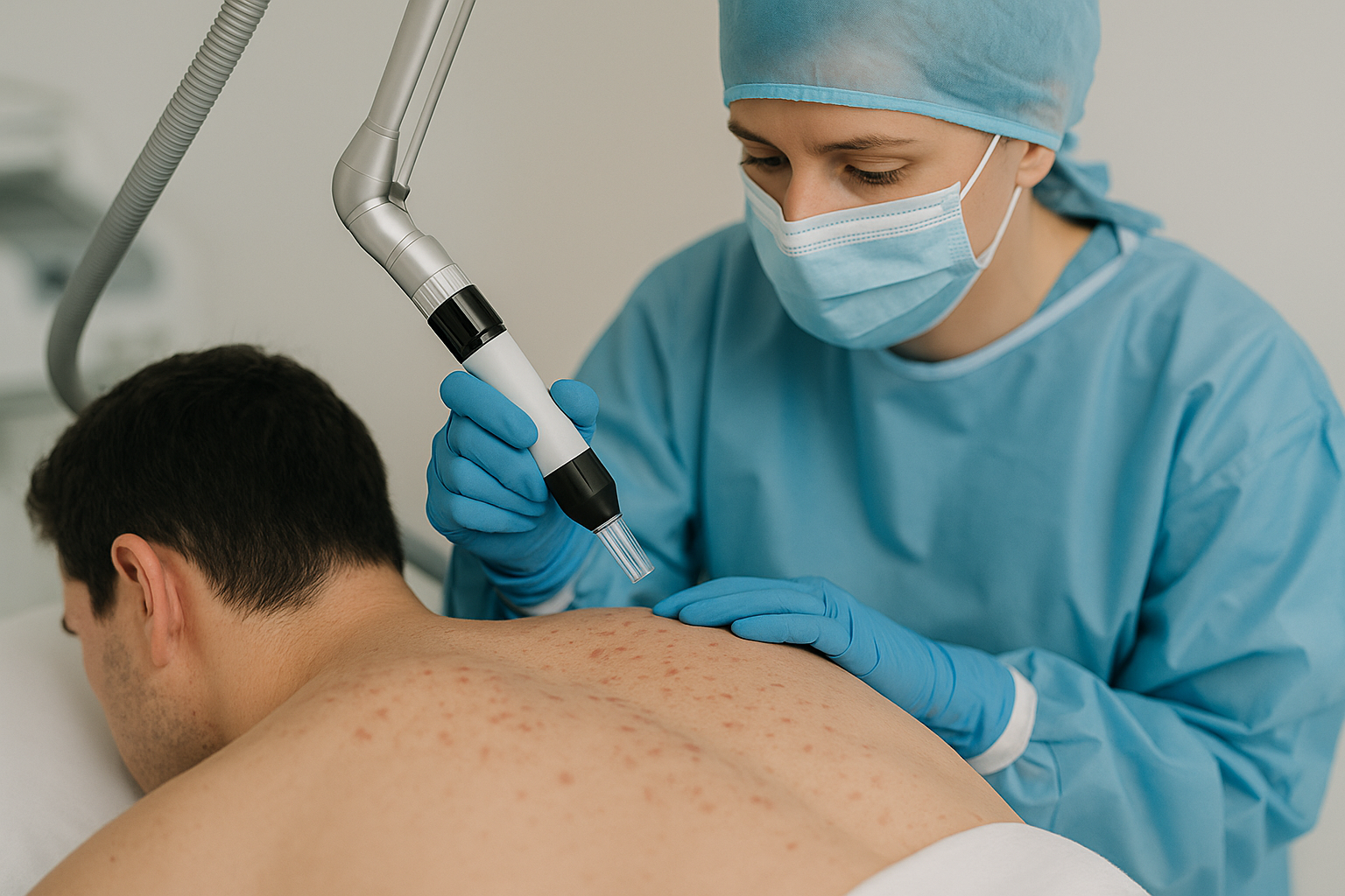 - Fractional non-ablative Laserbehandlung zur Verfeinerung der Hautstruktur, Reduktion feiner Narben und Verbesserung von Pigmentunregelmäßigkeiten.